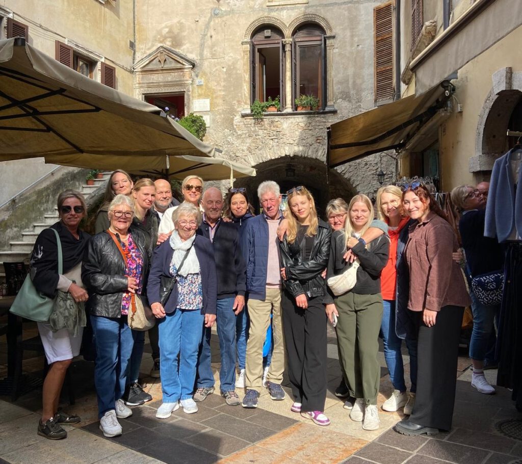 Unser jährlicher Vereinsausflug begann am 3. Oktober bereits um 6 Uhr früh. Mit einem Bus der Fa. Marx fuhren wir Richtung Süden zu unserem Ziel, dem Gardasee. Während der Fahrt waren wie immer Getränke und Brotzeit ausreichend vorhanden und so erreichten wir, trotz einiger Staus, bestens gelaunt am Nachmittag Malcesine am oberen Gardasee. Von dort aus fuhren wir, umgeben von tollstem Gardasee und Bergpanorama, mit dem Schiff hinüber nach Limone. In und um den kleinen Ort am Berghang gab es früher einmal viel Zitronenanbau. Hier hat alles mit Zitronen zu tun – Türschilder, Zitroneneis, Limoncello etc. waren überall zu sehen und zu kaufen. Nach einer weiteren Fahrt mit Abendstimmung am See entlang erreichten wir unser Hotel in Castelnuovo, wo es auch gleich Abendessen gab.